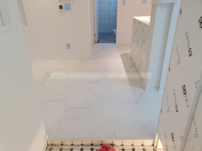 거실측에서 시공 후 방측으로 페턴을 연결하여 시공을 진행하게 됩니다.